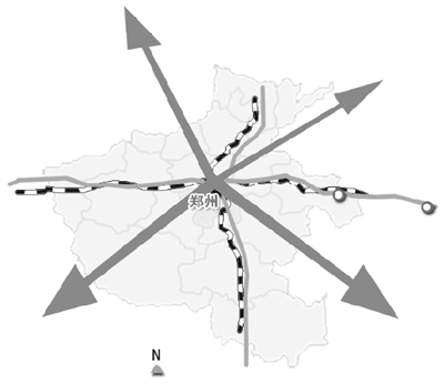 “米”字形快速鐵路網,是國務院批復《中原經濟區規劃》和《鄭州航空港經濟綜合實驗區發展規劃》明確的重大工程,具體就是在京廣和徐蘭“十”字形快速客運通道基礎上,建設鄭州至萬州、鄭州至濟南、鄭州至合肥、鄭州至太原的高速鐵路。根據鄭州都市區整體規劃,未來將形成以鄭州為中心的“米”字形高鐵輻射網絡,實現北京、西安、武漢等30多個城市的“3小時經濟圈”。