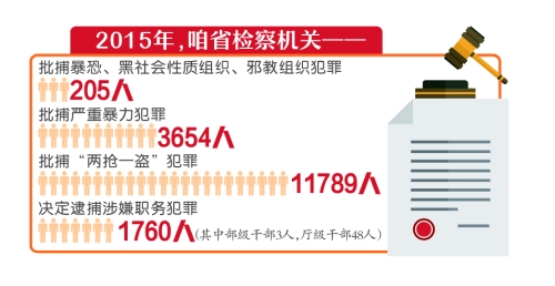 去年,我省檢察機關決定逮捕涉嫌職務犯罪1760人,其中部級干部3人,廳級干部48人。此外,在打擊非法集資、促進依法行政、規范司法方面也取得成效。