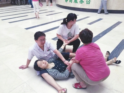 本報周口訊6月18日一早,市民孫女士在婆婆的攙扶下前去周口市中心醫院準備就診。由于未到上班時間,正在候診的孫女士突然下身出血暈倒。提前到崗的門診值班醫生張玉玲恰巧看到這一幕,立即坐在地上用大腿當“病床”墊起孫女士的頭部,并采取急救措施,最終使孫女士脫離了生命危險。