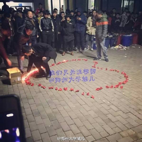 有時候表白失敗的因素不一定是被拒絕了,還有可能是學校領導的滅火器!在鄭州財經學院,女主還沒來,一場還未開始的表白就已經結束了,心疼那個男同學,估計現在那帥男已經哭暈在廁所,嗚,領導“法海”你還我愛情。