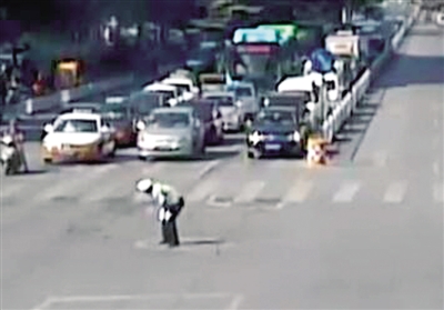 騎電動車經過的兩名男子見狀,立刻上前將王宏釗攙扶起來,緊接著又有幾位市民趕到。一名穿著紅色上衣的男子將王宏釗扛在肩頭,一位女士給王宏釗打傘遮陽,眾人一起把王宏釗轉移到路邊。聞訊趕來的其他交警在這個路口補位,繼續指揮交通。