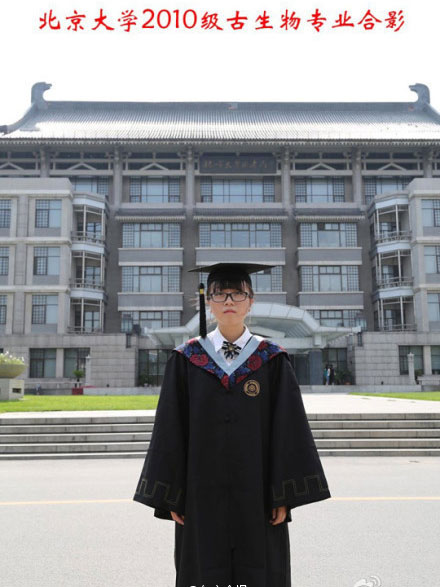 北京大學2010級古生物專業學生薛逸凡在社交網站上發布了張“一個人的畢業照”,據其所畢業的北大元培學院副院長盧曉東介紹,“這是全中國唯一的一個只有一名學生的專業,差不多是每個年級有一個人。”炫酷到沒有同學。。。
