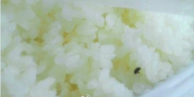 10日,陸先生乘坐G125次列車從北京前往上海,在購買的45元盒飯內發現,米飯中有不少“芝麻”狀的蟲子。“高興地以為米飯內加了黑芝麻,仔細一看都是小蟲子。”“目測有10只”。事后,列車長退還其45元飯費,但陸先生仍表示不滿。