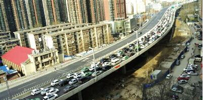前天,隴海路高架京廣路至紫荊山路段一度被堵城停車場,平時三分鐘的路程竟然走了近40分鐘。原來是施工單位在橋面上擅自占用車道施工,事先沒有向交警部門報備。現在施工設備已移至地面,今天不會影響高架通行。