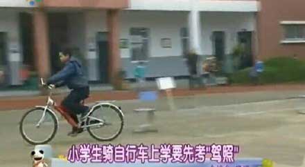 近日,廣東一小學規定:學生騎車上路,須通過考試取得“準騎證”。首先要求年滿12周歲;然后筆試;最后進行“ 路考”。“路考”是在老師和交警的監考下,學生騎車沿著一個大的“8”字走一遍,雙腳不觸地、人不掉下來則通過考試。