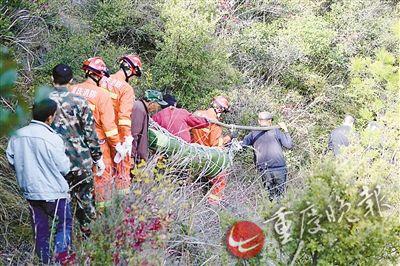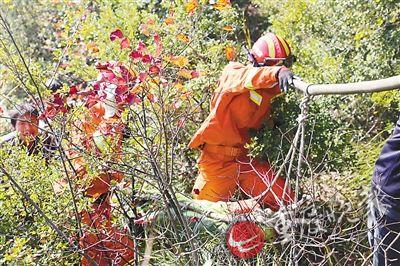 消防官兵和當地村民披荊斬棘護送白靜波遺體下山