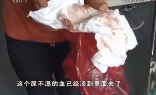 有個人我們是認識的,他也是在菜場里做生意的,有的時候會抱女兒玩。這回也是抱女兒出去玩,差不多40分鐘才回來。當時寶寶手上拿著糖但是目光很呆滯,我給她換衣服,碰到她下體,她有點不高興,尿不濕的血已經滲到里面去了……