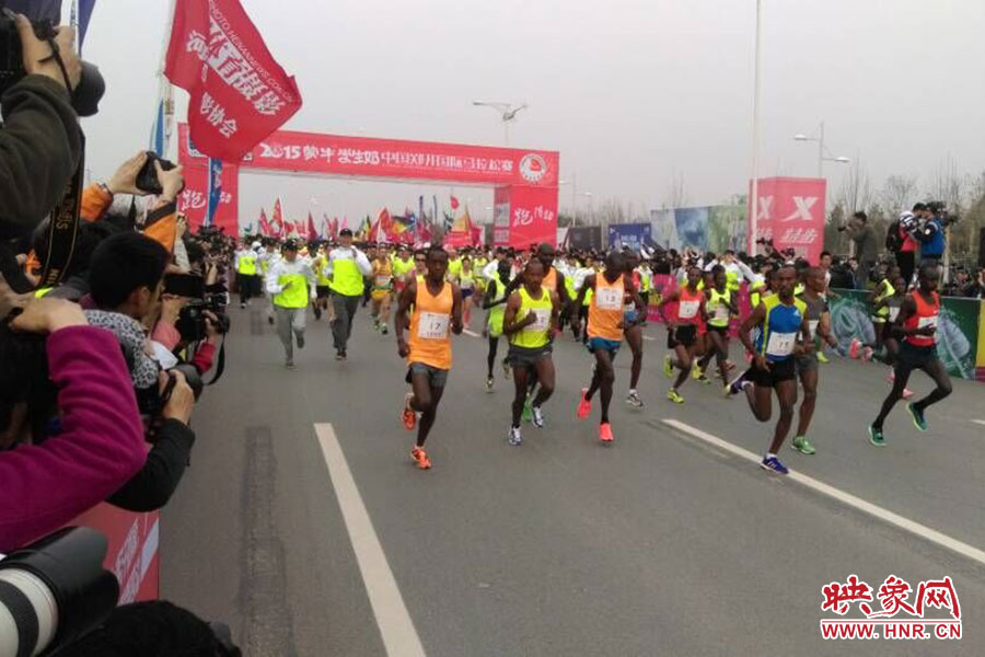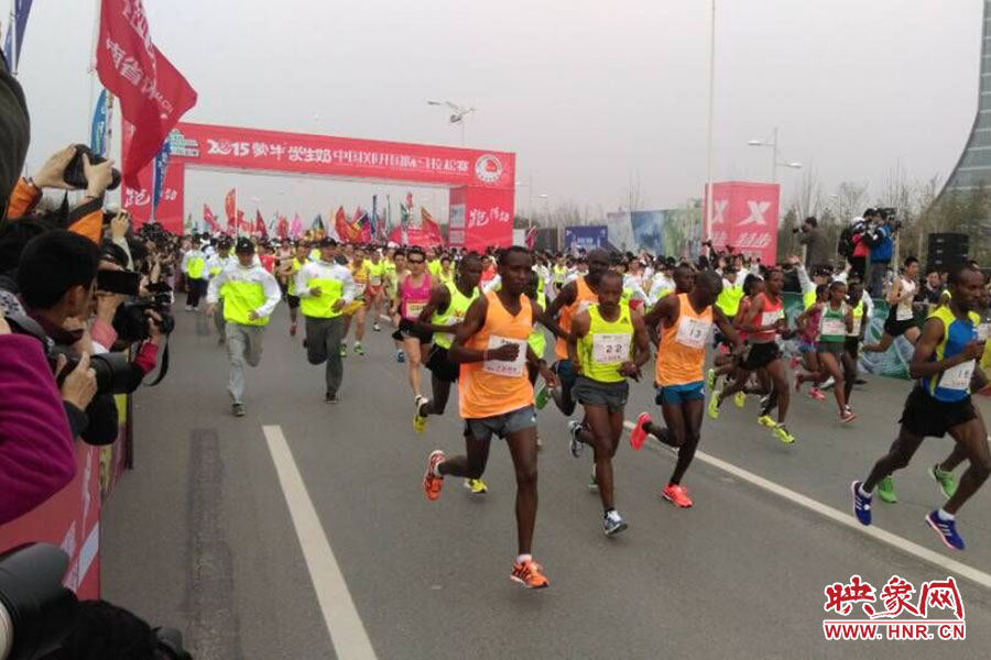 映象網訊(記者 駱瓊 阮海峰/文 閆善良 段晉哲/圖)3月29日上午8時30分,2015中國鄭開國際馬拉松賽在鄭東新區鳴槍開賽,來自29個國家和地區的4.9萬名運動員在春天里激情開跑,人數再創歷史新高。