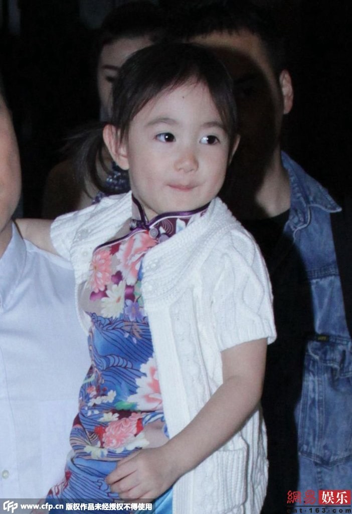 近日李小鵬抱女兒快步離開活動現場。女兒奧莉身穿花旗袍配白色外套,還不停做表情賣萌搶鏡。