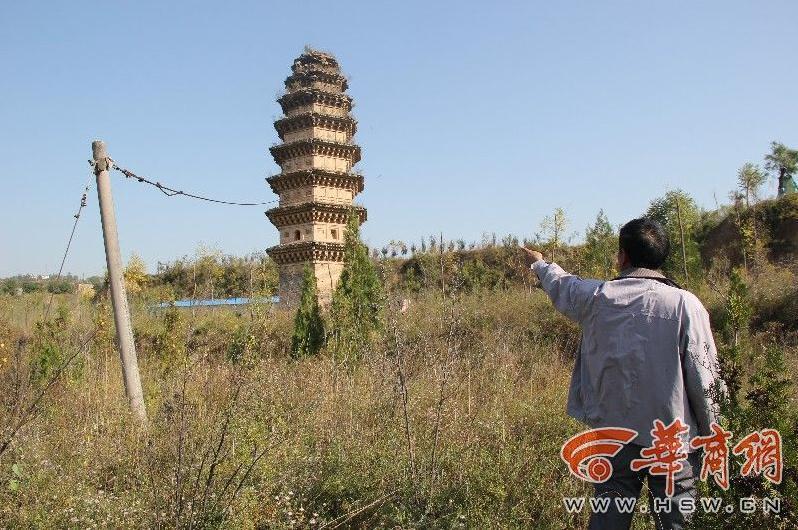 12日,住在離塔不遠處的村民趙先生告訴華商報記者,在他的印象中,這座塔發生傾斜已經有20多年了,大約在2005年前后。銅川新區管委會的工作人員在塔身上系上了一根鋼索,目的是為防止塔身繼續傾斜。“趕緊把這塔保護一下,再不保護這塔可能就沒有了。”趙先生說,除了傾斜、風蝕,導致塔體破壞外,偶爾還有盜墓賊光顧,他們在他周圍打了好幾個盜洞,這也加速了塔的破壞。