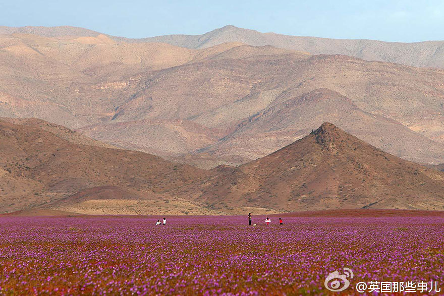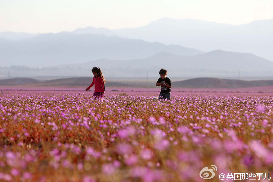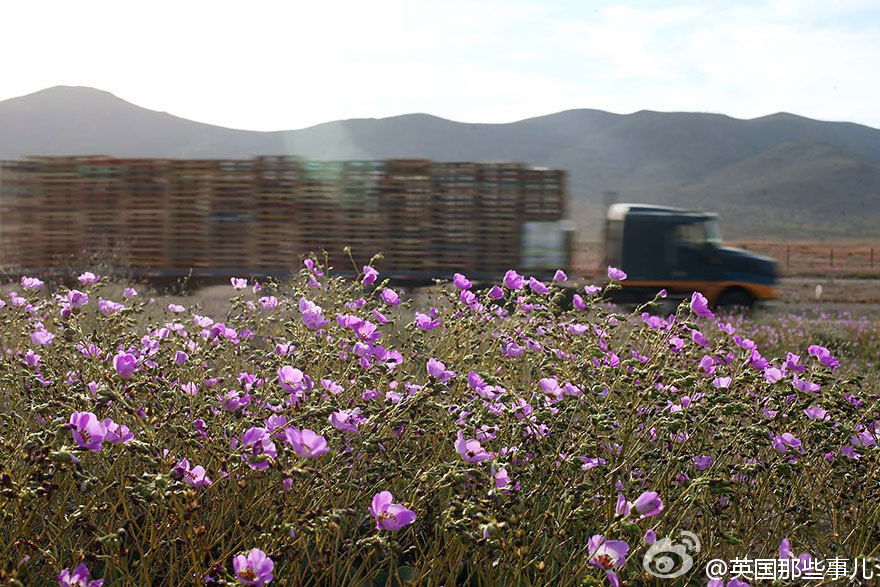 智利阿塔卡馬沙漠本是世界上最干燥的沙漠,今年的厄爾尼諾現象帶來了一場超乎以往的大雨,沙漠土地里休眠的各種花朵種子瞬間發芽、生長、開花,在這以往死寂的沙漠綻放。