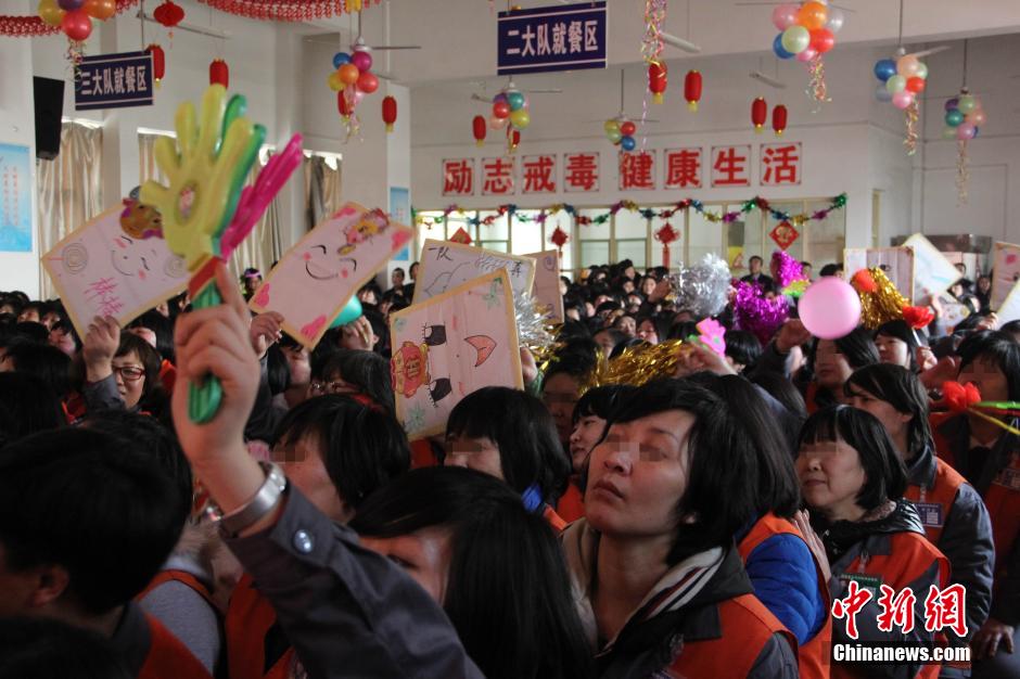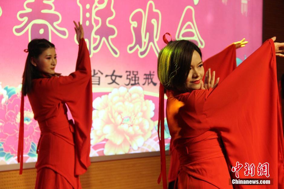 22日,適逢元宵佳節,一場由民警和戒毒學員共同演繹的聯歡會在陜西省女強制隔離戒毒所舉行,通過歌舞、相聲、二人轉、小品等表演形式,鼓勵戒毒人員在新的一年,繼續增強戒毒意愿和決心,早日戒除毒癮回歸社會。圖為民警表演歌伴舞。 張一辰 攝