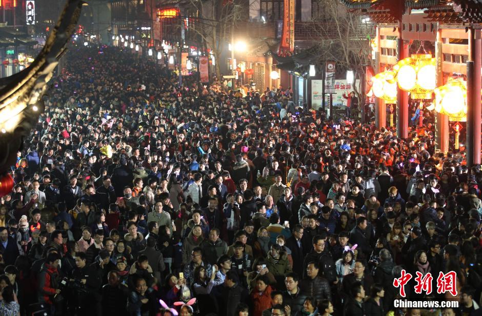 2月22日晚,南京夫子廟廣場上人山人海。當日是元宵節,數十萬市民和游客涌進南京夫子廟景區內欣賞秦淮燈會,瞬間開啟“人從眾”模式。秦淮燈會又稱“金陵燈會”,是流傳于南京地區的特色民俗文化活動,主要在每年的春節至元宵節期間舉行。 中新社記者 泱波 攝