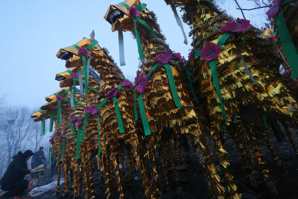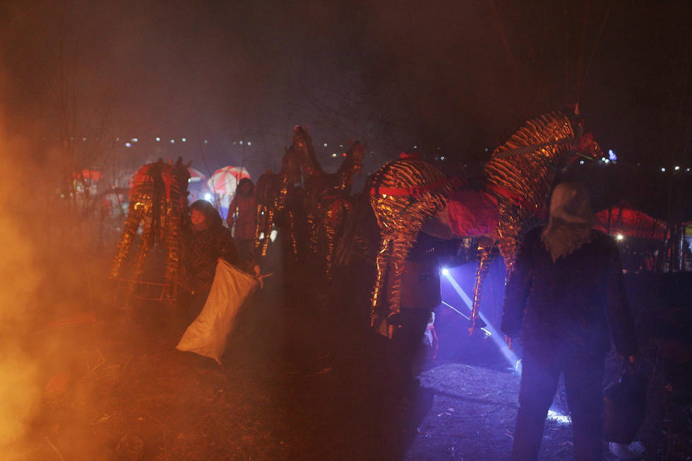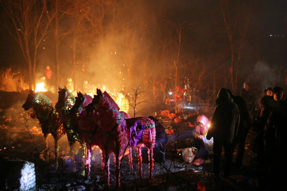 2016年2月23日凌晨,山東省濱州市惠民縣小霹靂莊,宋代古冢牛保冢上一年一度的正月十六祭祀活動正式開始,方圓百里萬余百姓陸陸續續趕來祭祀,以求風調雨順,家和事興。多種祭祀用紙馬先后被抬上祭壇引燃,化作火龍直沖云天,數量足有數千匹之多,場面壯觀且奇異,親臨現場宛若置身神鬼大片,令人印象深刻。