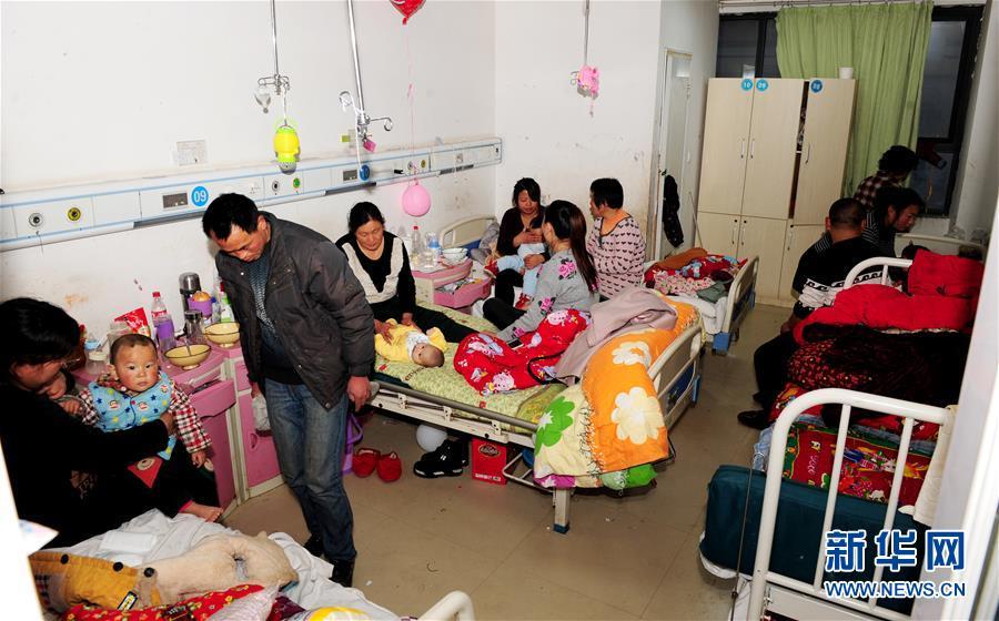 2月22日,在河南省開封市杞縣人民醫院,原本標配3張床位的15平方米兒科病房被放置了5張床。病兒及家屬共計14人擠在狹小的空間里。新華社發 馮大鵬 攝 圖片來源:新華網