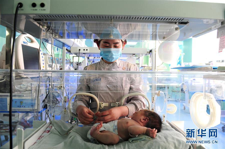 2月22日,在河南省商丘市柘城縣人民醫院,新生兒病區的護士在給一位嬰兒做護理。由于近年來早產兒逐漸增多,醫院的暖箱一直處于飽和狀態。新華社發 馮大鵬 攝 圖片來源:新華網