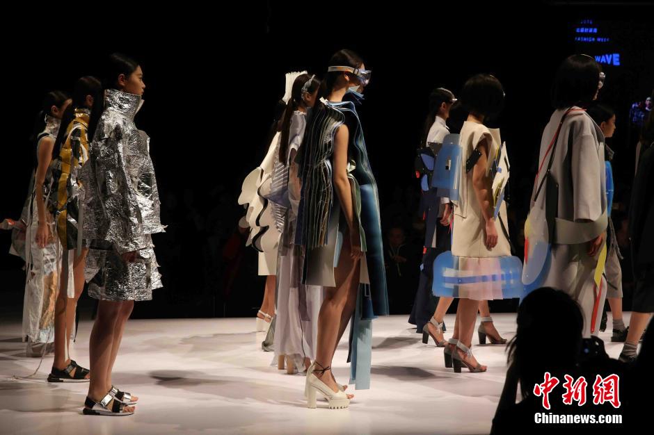 北服時裝周各專業(yè)方向的畢業(yè)秀都有全新設(shè)計,首次按“時尚創(chuàng)意”和“時尚成衣”分組進行專場發(fā)布的女裝設(shè)計方向是本屆一大亮點。 中新社記者 任海霞 攝