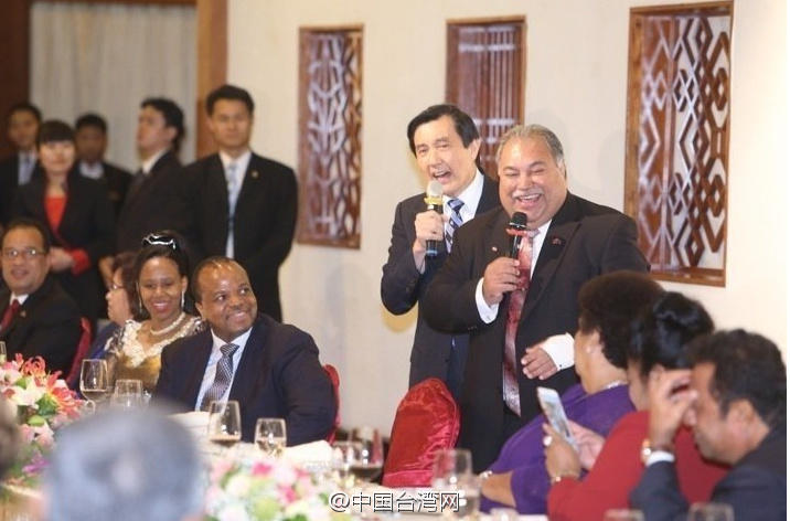 當晚,馬英九在圓山酒店昆侖廳設宴款待外賓,席間一時興起,與瑙魯總統瓦卡合唱了一曲“Let it be me”。隨后開玩笑表示,先前外界問他卸任以后要作什么?自己都宣稱是機密不能透露,今天終于可以宣布,就是要和瓦卡總統合組一個樂團,臺下大笑鼓掌。