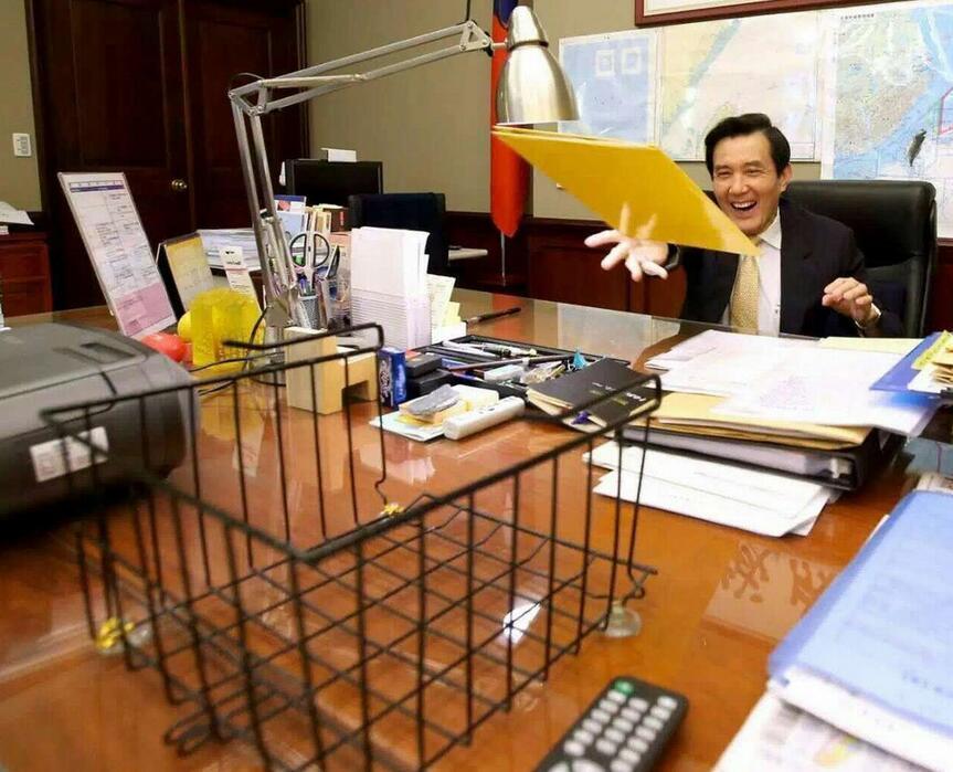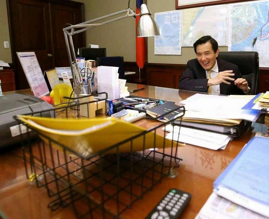 卸任前在辦公室的馬英九。馬英九,1950年出生于香港,祖籍湖南省衡山縣,1952年隨家人移居中國臺灣。2016年5月19日是他任職臺灣領導人的最后一天。大約兩年前,馬英九開始陷入執政低谷,民望最差時支持率只剩不到10個百分點,被反對者戲稱全球聲望最低的領導人。其時,他當時也被部分言論認為是臺灣最后一個執政的“中國人”。