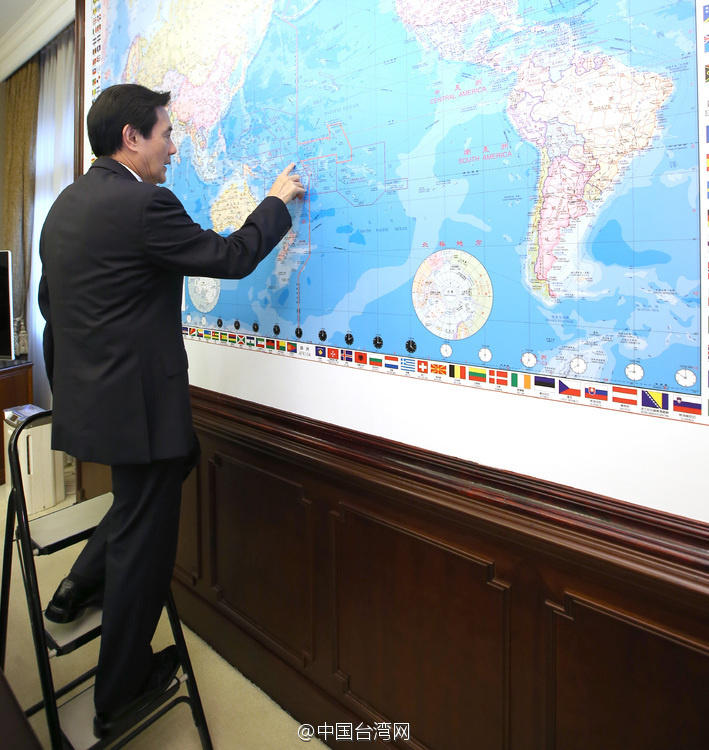 “總統”辦公室內有各式各樣的地圖,馬英九喜歡站在梯子上研究巨大地圖。