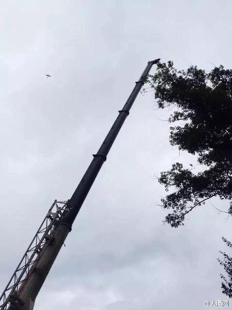 男子掛樹上近 1小時,最后請來吊車前來救援。辛苦下樹的男子手抱花束,來到女子面前求婚。但女子沒有答應轉身離去。