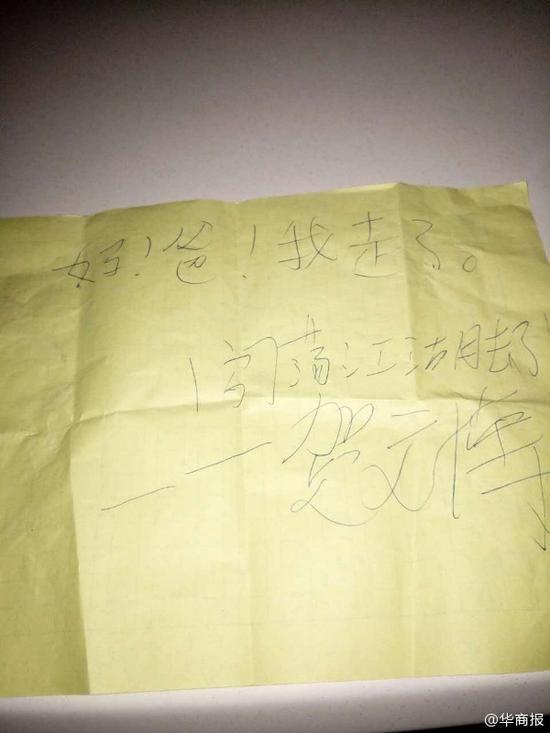 據賀先生介紹,他是清澗人,在榆林草海則附近打工,5月24日15時左右,賀先生的妻子回到在草海則租房中看到,家里有被翻動的痕跡,剛在家中衣服口袋里的1000元錢不見了,桌子上放了一張紙條,上面是兒子賀文博的字跡:“爸!媽!我走了,闖蕩江湖去了――賀文博”。