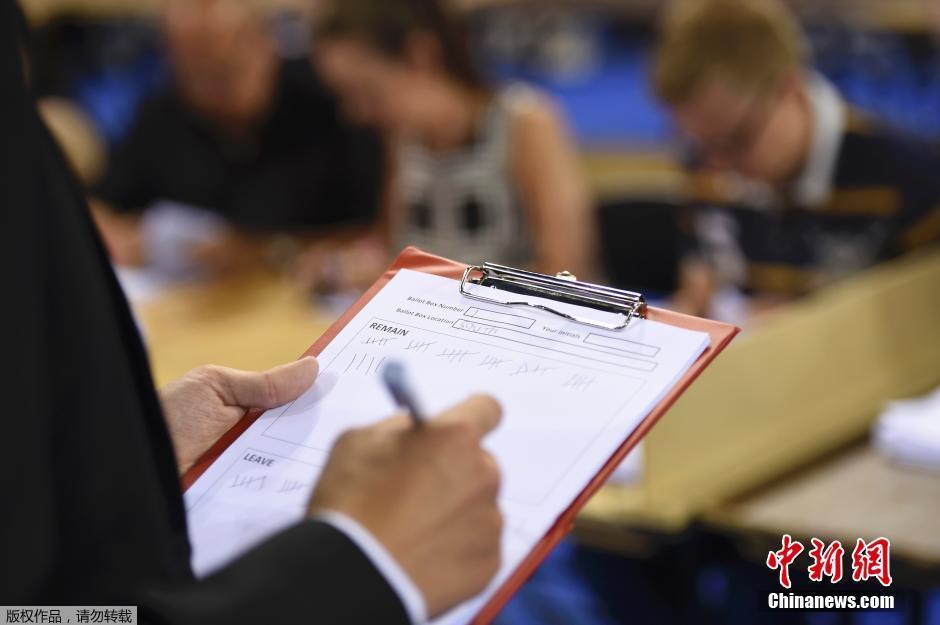 當地時間2016年6月23日,英國脫歐公投拉開帷幕,各地計票工作進行中。