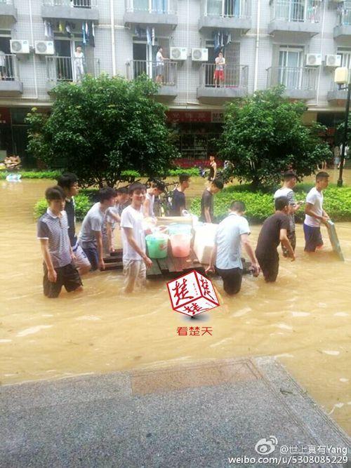 楚天都市報7月6日訊(記者劉閃)今日,暴雨肆虐,不少被淹高校學生吃飯成了難題,為了方便學生,武漢工商學院特地給同學們送去近萬份盒飯,由食堂工作人員和各學院班干部一一送到學生宿舍樓下,免費發放給學生。 (來自:楚天都市報)
