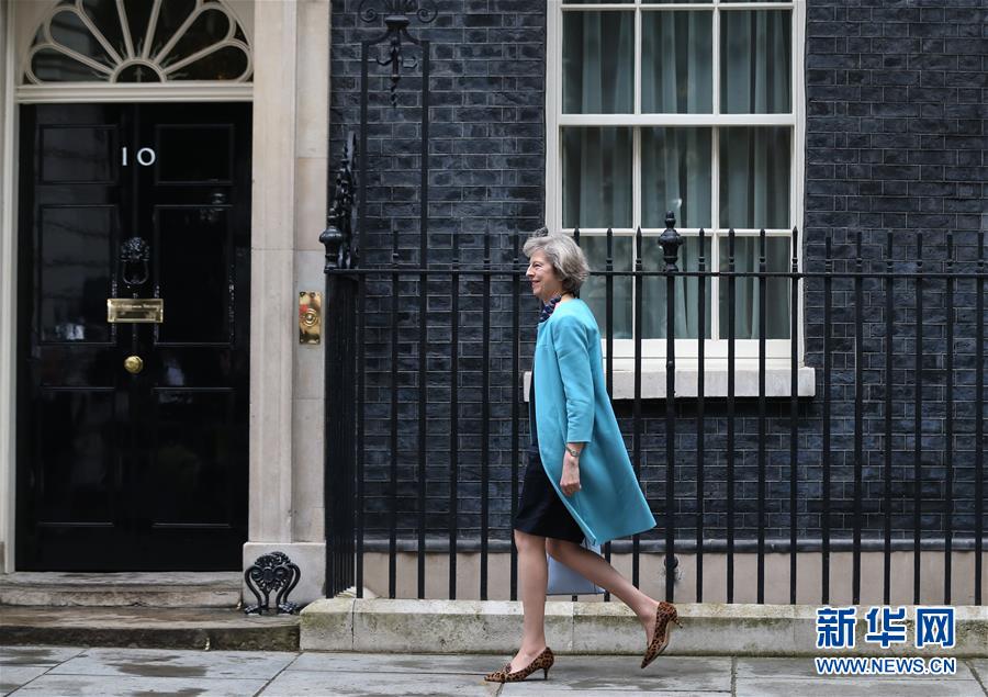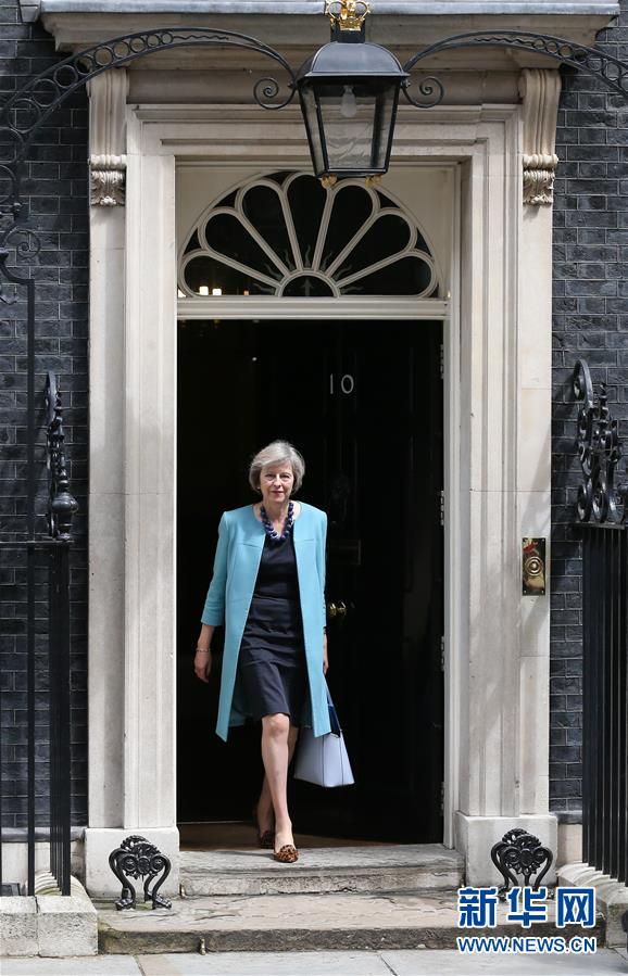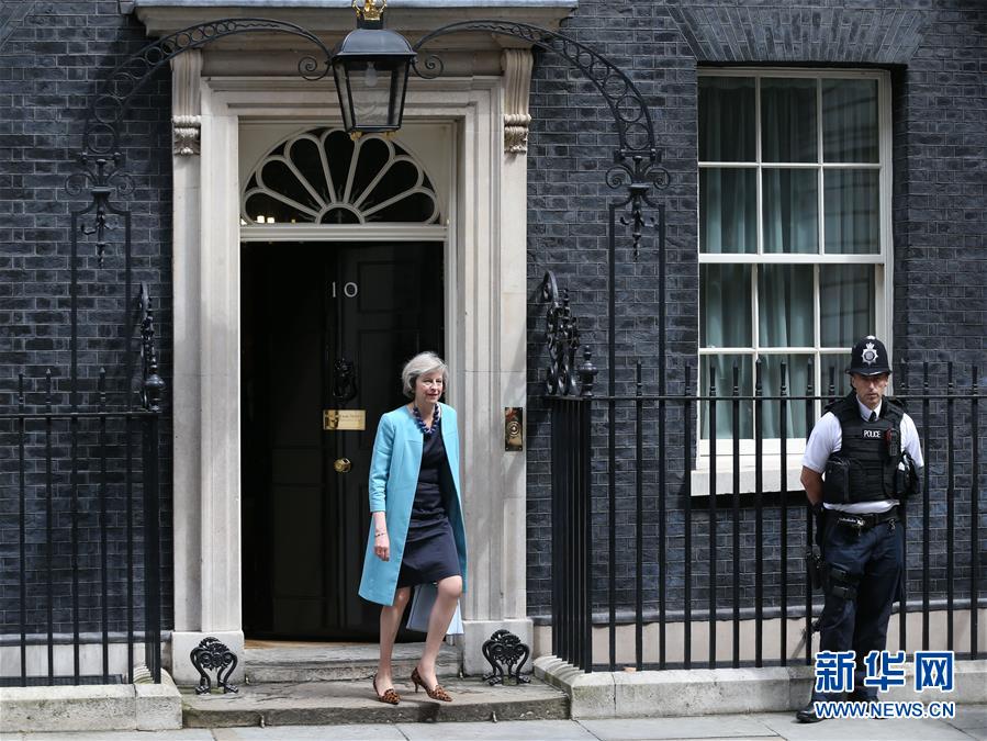 。這是6月27日英國內政大臣特雷莎·梅參加完內閣會議從倫敦唐寧街10號走出的資料照片。 新華社記者韓巖攝