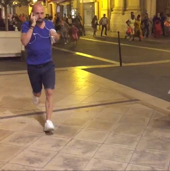 尼斯市市長(zhǎng)埃斯特羅斯說,“一個(gè)大貨車司機(jī)似乎殺死了數(shù)十人。” 他呼吁當(dāng)?shù)鼐用窳粼诩抑校灰獬觥?還有報(bào)道說,警察同大貨車?yán)锏娜讼嗷ド鋼簟5沁@一消息沒有得到確認(rèn)。 社交媒體上發(fā)表的視頻顯示,事發(fā)后人們?cè)诮稚象@惶地奔跑。 當(dāng)?shù)貓?bào)紙的一名記者說,他在現(xiàn)場(chǎng)看到很多血跡,很多人受傷。
