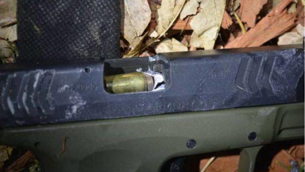 如果美國(guó)的陪審團(tuán)審想問搶劫未遂犯Jahlil Meshesha “在去年冬天是否準(zhǔn)備武裝搶劫崗杰斐遜縣副警長(zhǎng)Jose Ramon Marquez”,那么他們只需要看一下上面武器的照片就好了。照片顯示在搶劫犯Meshesha準(zhǔn)備開火時(shí),副警長(zhǎng)Marquez的子彈射入了搶劫犯的槍管中。圖為搶劫犯的手槍。警察的子彈從槍口射入嫌犯槍支,隨后卡在槍膛中,還將槍膛中的一顆子彈打變形。由于手槍彈頭多是較軟的鉛芯彈,因此有一定概率發(fā)生這種情況。