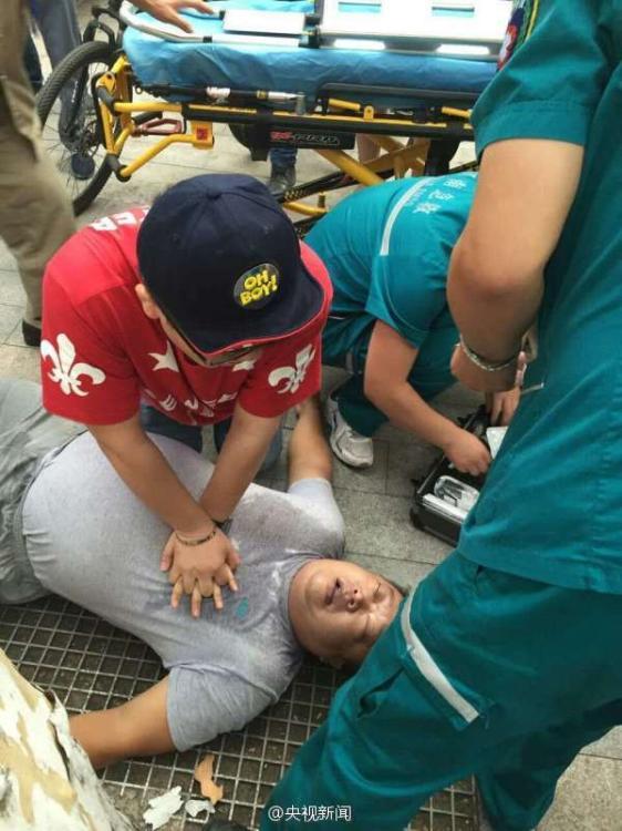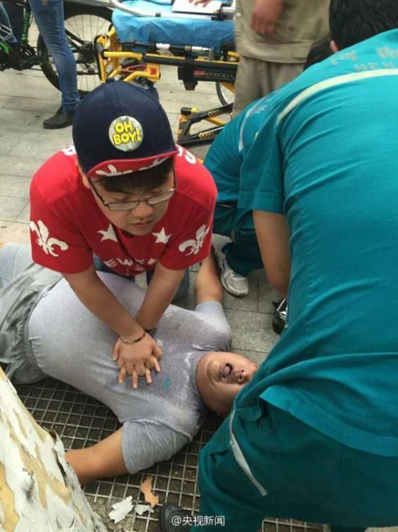 8月9日18點30分,鄭州人民醫院男護士李笑展在趕赴約會的路上,見路邊一50多歲的先生倒地,口唇發紫呼吸困難,他立即上前對其采取了胸外按壓急救措施;待急救車趕到,他協助救援,直到病人病情穩定才離開。 央視記者 邱寶華 圖片來源:央視新聞微博