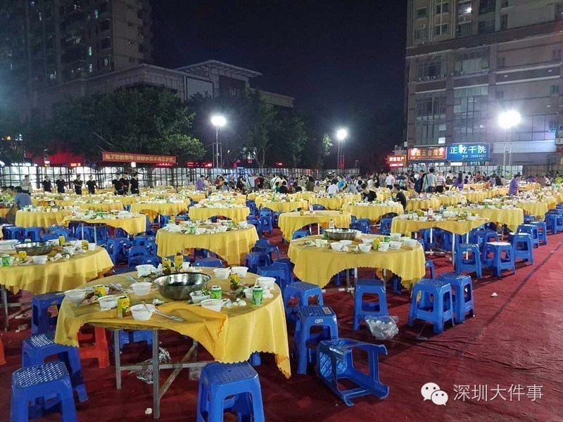 去年,水貝村完成了整體拆遷,因此,這次的盆菜宴,是在水貝舊城的廢墟上騰出的一塊空地上進行。
