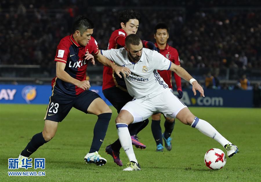 12月18日,皇家馬德里隊球員本澤馬(前右)在比賽中拼搶。 新華社/美聯