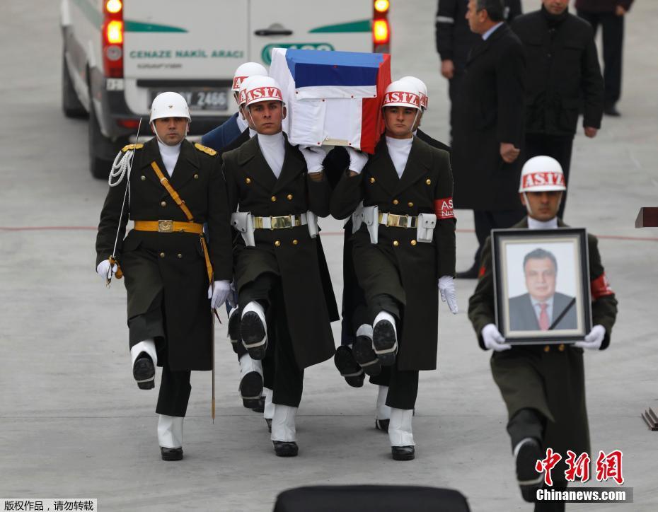 當(dāng)?shù)貢r(shí)間2016年12月20日,土耳其安卡拉,遇刺身亡的俄羅斯駐土耳其大使卡爾洛夫的遺體將搭載飛機(jī)返回俄羅斯。