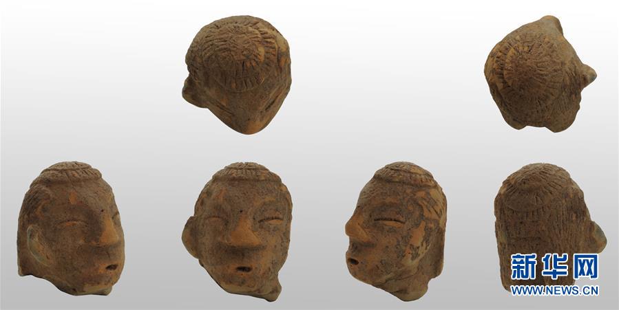這是遼寧朝陽市半拉山紅山文化墓地出土的陶人頭像(資料照片)。新華社發