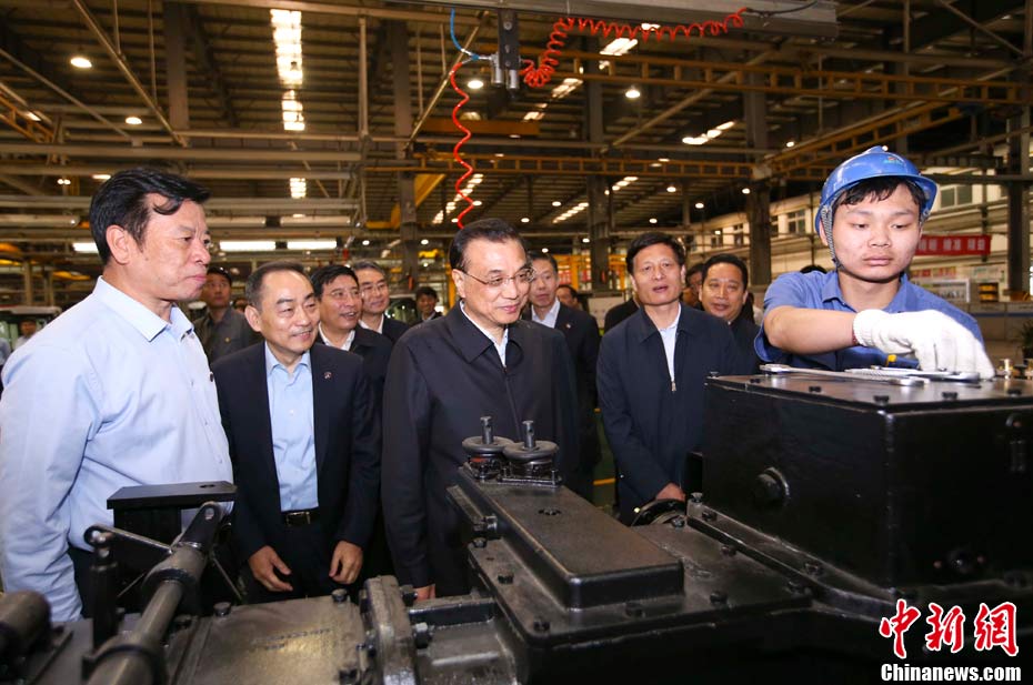 5月8日至9日,中共中央政治局常委、國(guó)務(wù)院總理李克強(qiáng)在河南省委書記謝伏瞻、省長(zhǎng)陳潤(rùn)兒陪同下,在開封、新鄉(xiāng)、鄭州考察。圖為5月8日,李克強(qiáng)在開封中聯(lián)重科生產(chǎn)車間考察。中新社記者 劉震 攝