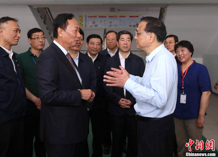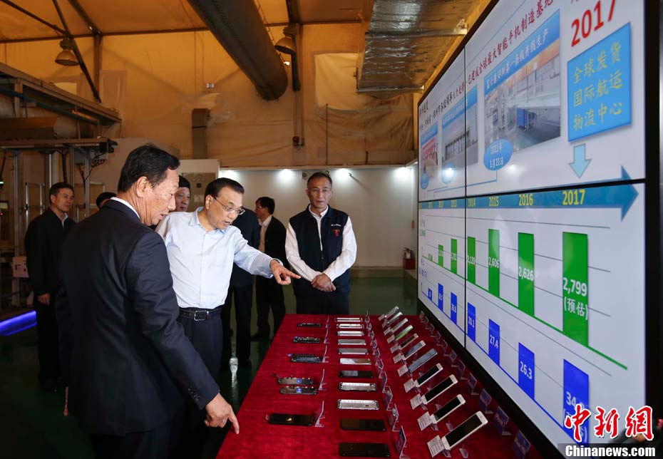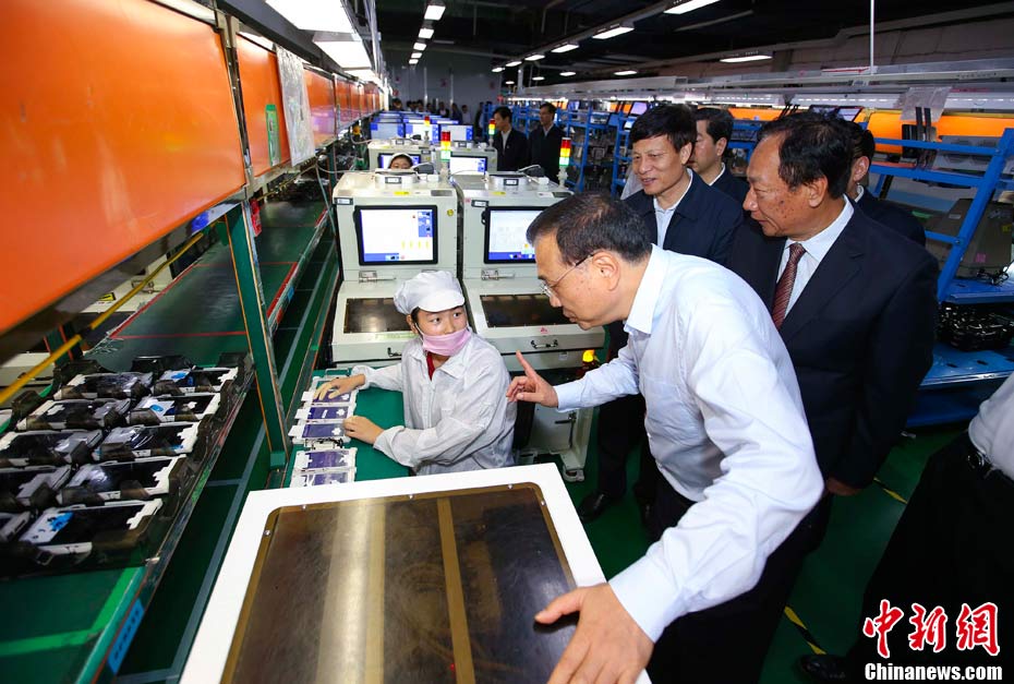 5月8日至9日,中共中央政治局常委、國(guó)務(wù)院總理李克強(qiáng)在河南省委書記謝伏瞻、省長(zhǎng)陳潤(rùn)兒陪同下,在開封、新鄉(xiāng)、鄭州考察。圖為5月9日,李克強(qiáng)考察鄭州富士康科技園。中新社記者 劉震 攝