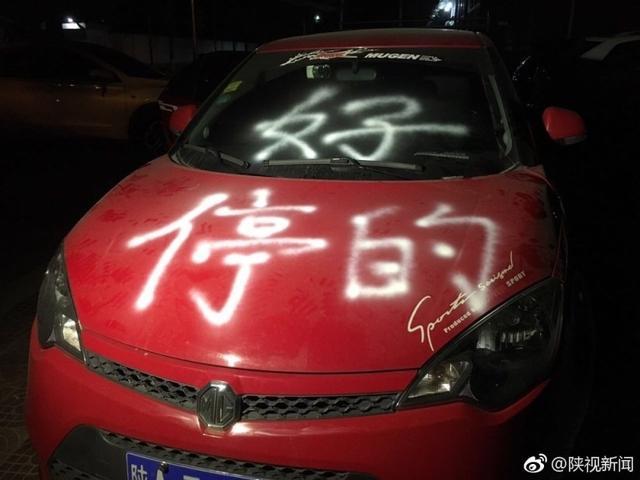 男子到西安方新路吃飯,因?yàn)闆](méi)車位就把車停在道沿中間,擔(dān)心自己的車會(huì)擋別人道,他專門留下了聯(lián)系方式。可是吃完晚飯后他回到車跟前卻看到自己的車被人噴了漆,寫(xiě)了三個(gè)字“停的好”。