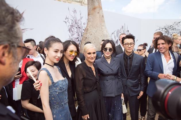 巴黎時間7月3日, Angelababy身著一襲手工刺繡的牛仔法式禮裙亮相巴黎高定秀,與章子怡、劉嘉玲、黃軒同框,氣質出眾。