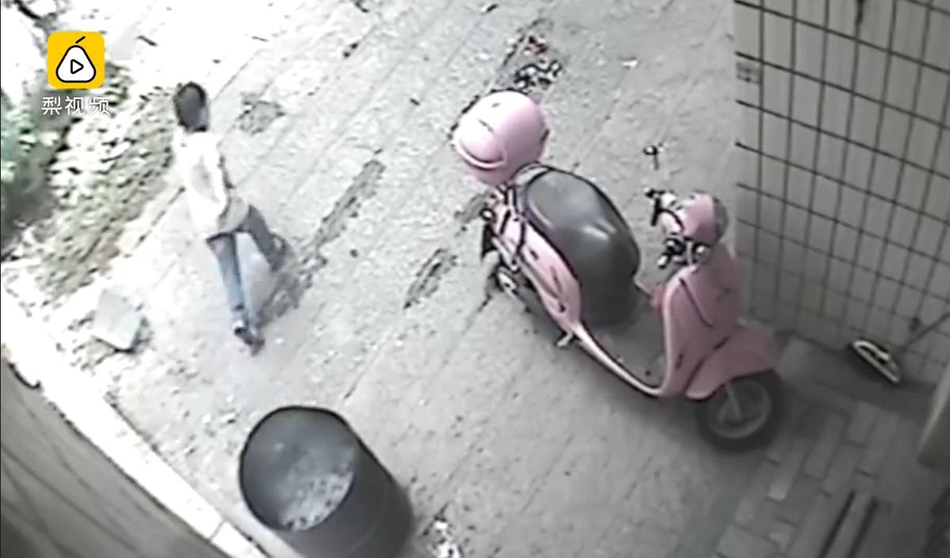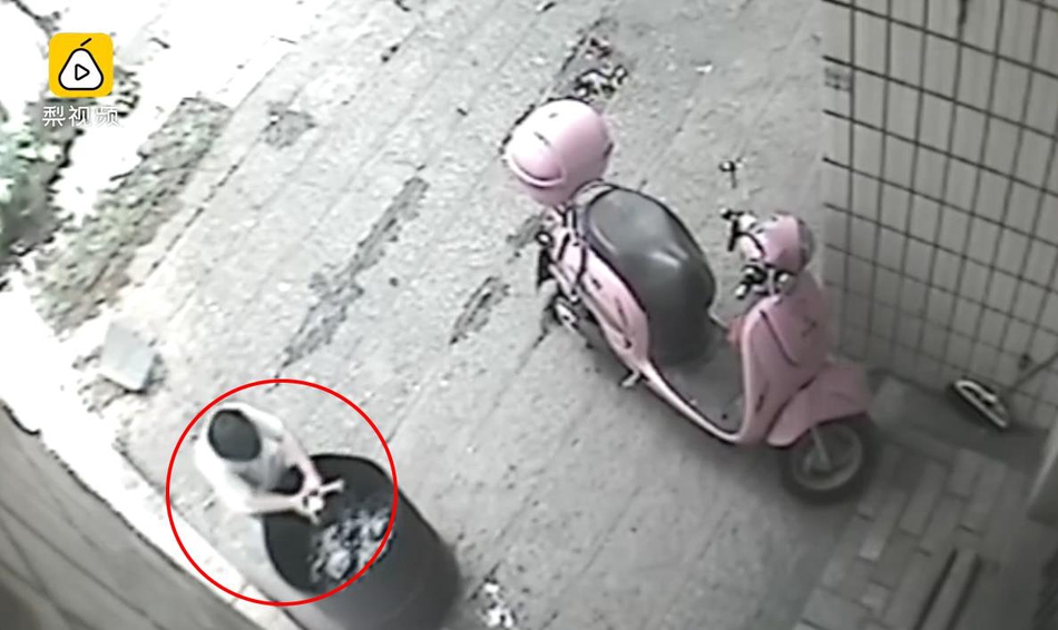男童扔完后離開現場。