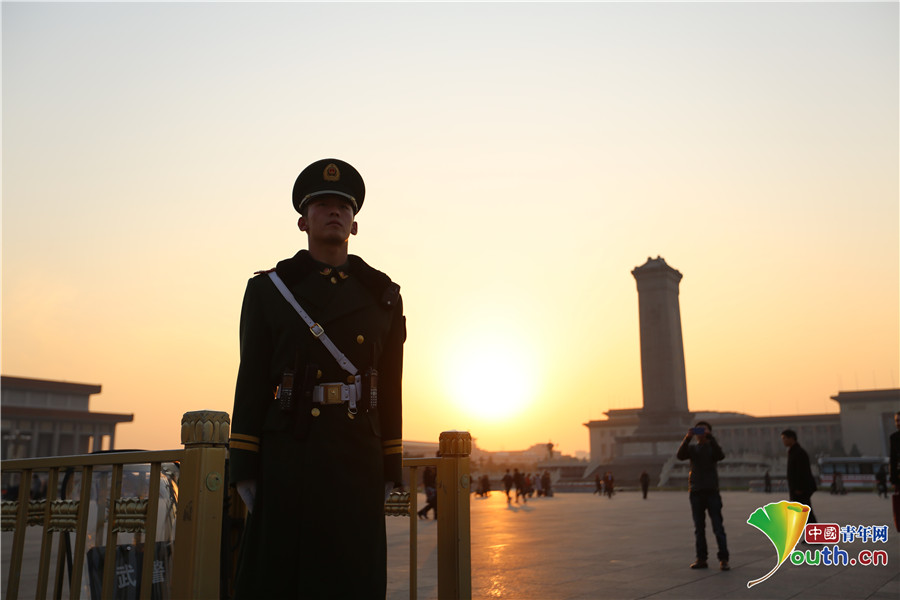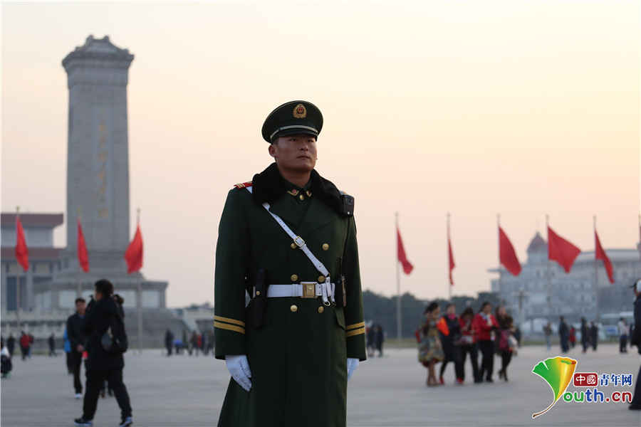 11月19日下午,武警官兵在天安門廣場(chǎng)執(zhí)勤。中國青年網(wǎng)通訊員 李超 攝