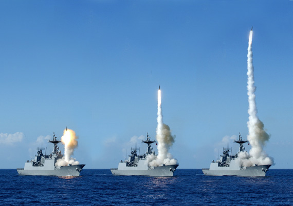 資料圖片:韓國海軍KDX-II級戰艦發射防空導彈。