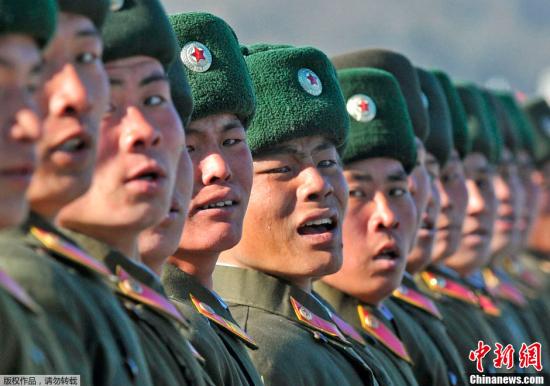 資料圖:2月16日,朝鮮人民軍陸海空三軍官兵展開盛大閱兵儀式。朝鮮人民軍陸海空三軍官兵向金日成大元帥和金正日大元帥表示崇高敬意,發誓無限忠于最高司令官金正恩。