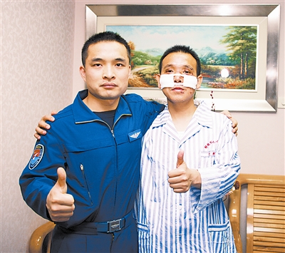 9時16分,飛機降落在跑道上,早已等候在停機坪上的官兵沖了上去。經診斷,張建興面部裂傷7處,頭、面部大面積挫傷,傷口最長達6厘米,深達顴骨,并有骨質暴露,面部需縫合30余針。