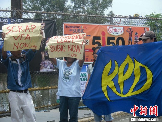 組織抗議活動的菲“全國民主運動”發布新聞稿中稱,參加抗議的民眾在蘇比克灣都市管理局大門前高舉標語,呼喊口號要求“美國潛艇立即離開蘇比克”,“立即廢除菲美《訪問部隊協議》(VFA)”。