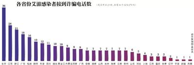 根據白樺的統計,截至昨日晚上,北京、江蘇、浙江三地接到詐騙電話的感染者人數最多,分別為36個、24個和21個。北京的兩位感染者和甘肅的一位感染者分別被詐騙3000元、2300元和700元。