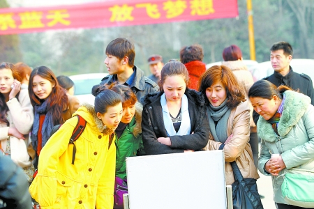 本報訊 當(dāng)空姐、空少是很多女孩男孩的夢想。上周末,鄭州航院門前排起長長的隊伍,空乘專業(yè)復(fù)試引來四省600余名俊男靚女“趕考”。今年報名人數(shù)比去年多了1/3,再創(chuàng)歷史新高,招生計劃也將隨之增加。