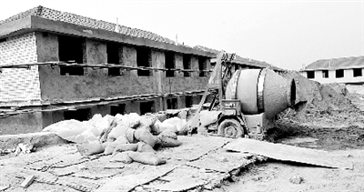 在泰山村村西邊看到大面積在建別墅已經(jīng)停工,一個(gè)農(nóng)民工說(shuō),這兒是“龍騰盛世”四期。關(guān)于停工,該農(nóng)民工說(shuō):“停幾天還會(huì)再開(kāi)工的,村支書能量大著呢。”