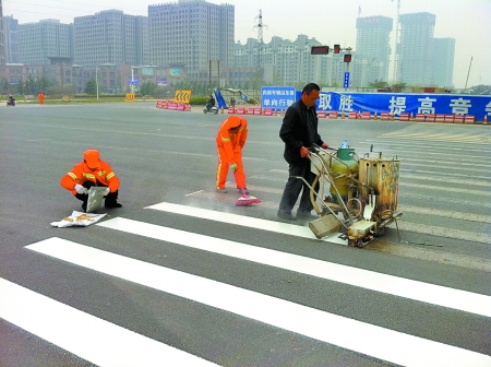 鄭州交巡警八大隊副大隊長吳永軍稱,一條道路標(biāo)線的更新周期為一年,對于一些容易磨損的路口路段,還要根據(jù)實際情況定期或不定期進行更新完善。此次重新劃定的交通標(biāo)線涉及鄭州市43條道路,面積達7.5萬平方米,主要是對路段模糊標(biāo)線進行重新補線及增加新的標(biāo)線。據(jù)了解,此次施劃的主要道路有紫荊山南路(航海路-紫東路)、大學(xué)南路(航海路-南三環(huán))、經(jīng)三路(金水路-農(nóng)業(yè)路)、東風(fēng)路(沙口路-花園路)、三全路(江山路-中州大道)、中州大道(石化路-南三環(huán))等。